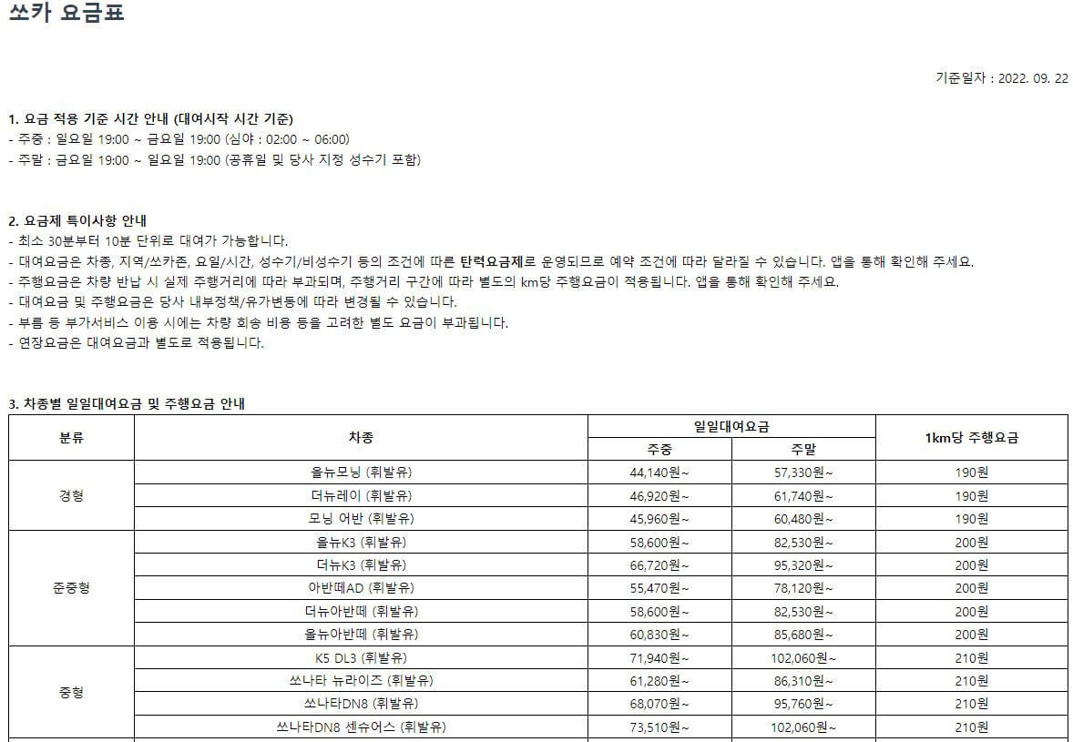 쏘카의 기본 요금은 차종과 이용 시간에 따라 차등 적용됩니다. 특히 2025년부터는 장기 이용 고객을 위한 할인 혜택이 추가되었습니다.